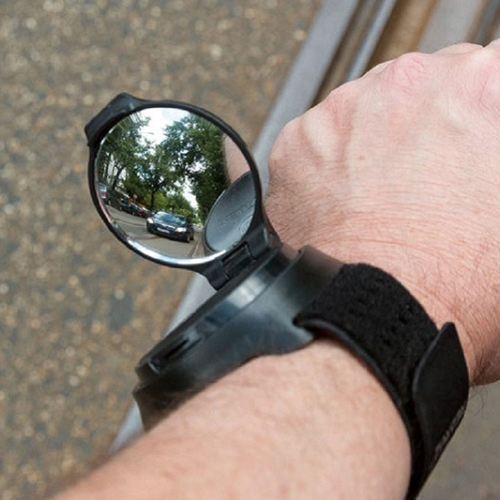 "The RearViz is a great safety device. Easy to attach to any part of my arm using the provided small or large bands. Bands are soft enough to wear strapped to my bear arm and adjustable enough to wear over shirt and jacket sleeves. Once the mirror is positioned (rotates 360 degrees and tilts), it remains in place until you decide to adjust. Image in mirror is stable and easy to see what is behind me with just a quick glance"