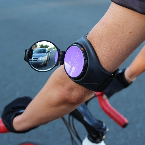 "The RearViz is a great safety device. Easy to attach to any part of my arm using the provided small or large bands. Bands are soft enough to wear strapped to my bear arm and adjustable enough to wear over shirt and jacket sleeves. Once the mirror is positioned (rotates 360 degrees and tilts), it remains in place until you decide to adjust. Image in mirror is stable and easy to see what is behind me with just a quick glance"